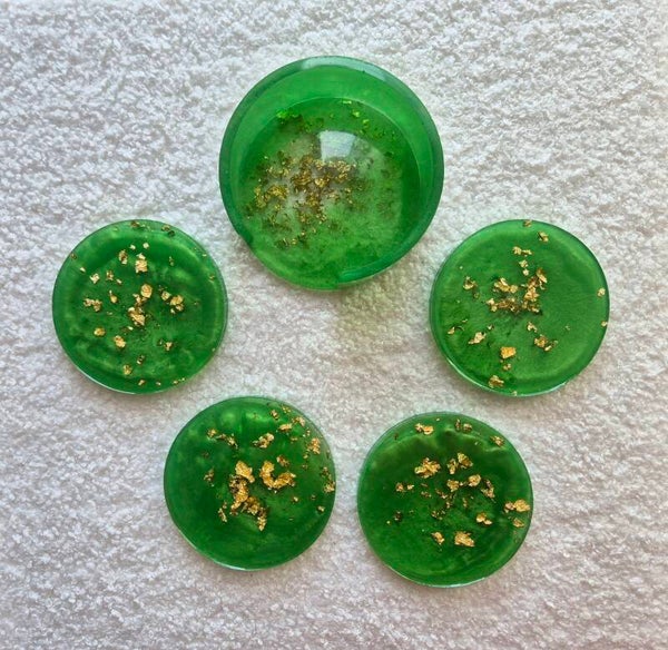 De onderzetters hebben een diameter van 8,5 cm. De houder heeft is 4 cm hoog en een diameter van 10 cm.