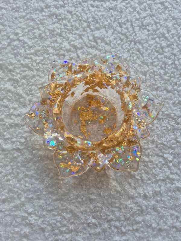 Deze lotusbloem theelichthouder zorgt voor een mooie sfeer in huis. B is 12,5 cm H is 4 cm.